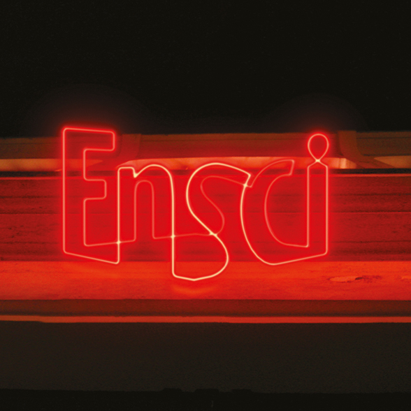 Pour la création de l’identité visuelle de l’ENSCI, le travail reposa en grande partie sur la collaboration de quelques étudiants volontaires (dont Karim Zaouai et Cyril Afsa) : il nous semblait logique que les étudiants soient partie prenante de ce qui les concernait directement, d’où une plate-forme de création dans et hors de l’école. Le logo lui-même est conçu comme un objet filaire, en trois dimensions, autour duquel on peut tourner, afin de le considérer sous tous les angles. Bien sûr, on retient un point idéal pour le considérer, qui permet de dessiner la vision « à plat » qui sera retenue pour toutes les déclinaisons en deux dimensions (courrier, en-tête, affiches, etc.). Le choix de la couleur rouge est lui aussi signifiant : il rappelle l’émail rouge de la plaque du numéro du bâtiment, sur la rue Saint-Sabin (qui distinguait autrefois l’École des autres bâtiments parisiens, et du bleu traditionnel de leurs numéros).