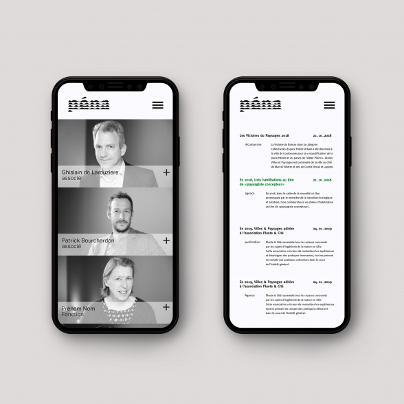 L’agence de paysagisme Pena souhaitait élargir ses horizons vers de nouvelles perspectives, tout en gardant sa philosophie, ancrée dans ses origines. Sa nouvelle identité visuelle est basée sur le principe du paysage et du dispositif de la lecture, à savoir qu’ils obéissent à la même loi de la bonne distance à la chose observée/lue : l’illusion d’optique opère sur le logo, comme elle le ferait sur un paysage, mieux lisible à distance que de très près. La typographie s’inspire des collines et des plaines, tout en relief et profondeur.