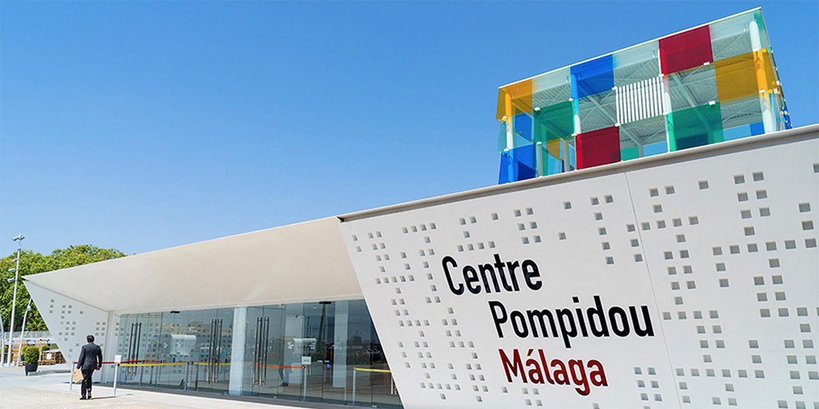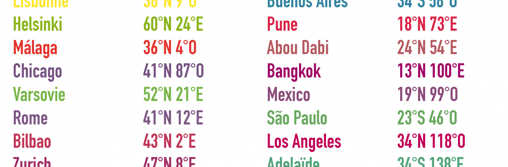 Le projet d’identité visuelle que nous avons élaboré pour le Centre Pompidou Provisoire, établi depuis 2015 à Malaga, correspond à un export vers l’International. Autrement dit, une mondialisation de la marque « Centre Pompidou » et une dématérialisation du Centre/Bâtiment. Nous avons requalifié la notion de « Centre » Pompidou en le positionnant au « Centre » du monde, ainsi sa coordonnée géographique devint 0° 0°. À partir de ce principe, nous avons positionné — comme une « carte mentale » — les pays en fonction de leur situation géographique. Une des caractéristiques du bâtiment parisien est cette notion de « voir à travers » — à la fois par la transparence des parois vitrées, ainsi que son code couleur.