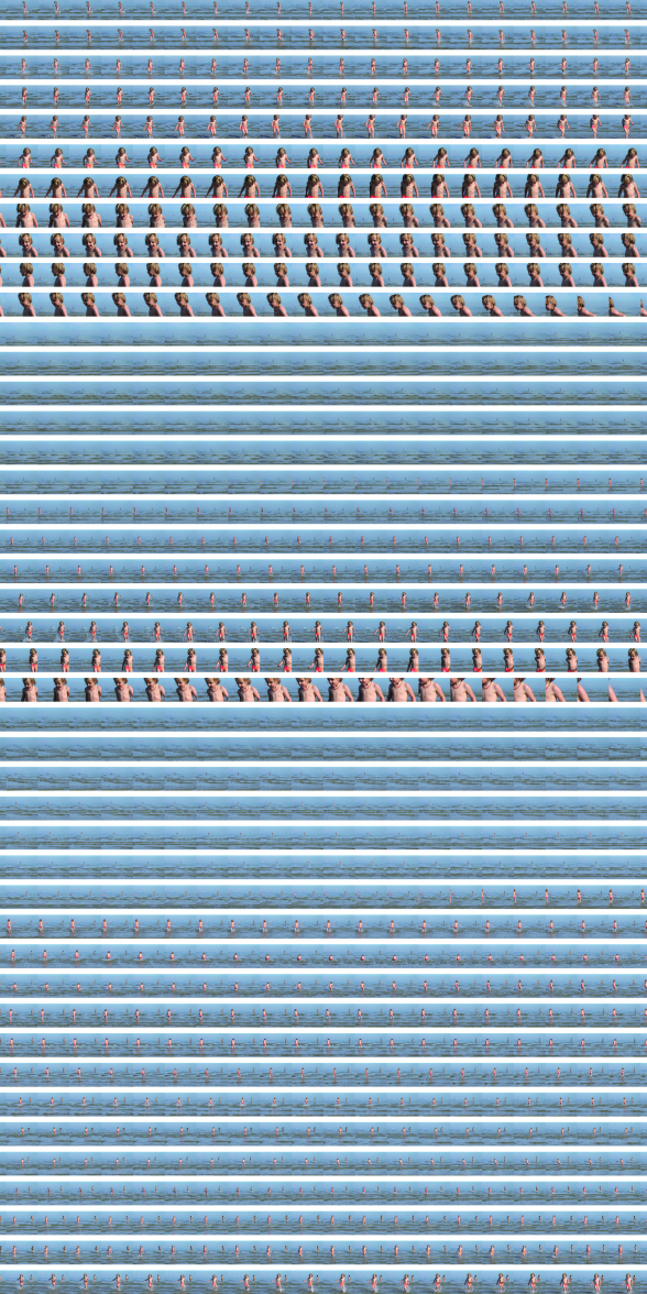 L’idée de départ a été d’utiliser le découpage de séquences vidéo, à la manière d’Eadweard Muybridge renommé pour ses décompositions photographiques du mouvement. Ainsi, ces séquençages en image par image nous permettent de décliner toute sorte d’ambiances en forme de pellicules plus ou moins abstraites.