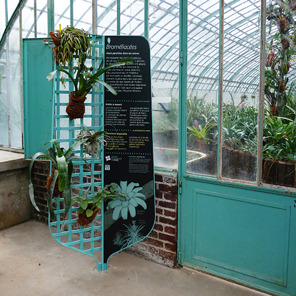 Un jardin est un objet vivant, mouvant, qui change de visage selon le temps et les saisons. La course du soleil, le passage des nuages, les rafales de vent en modifient la perception. La conception d’une signalétique « fixe » devait s’accorder avec ce dynamisme, qui est un miroir de la vie.