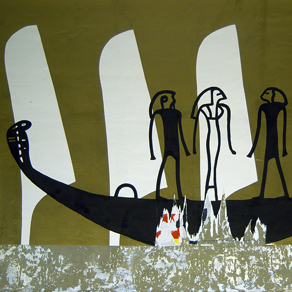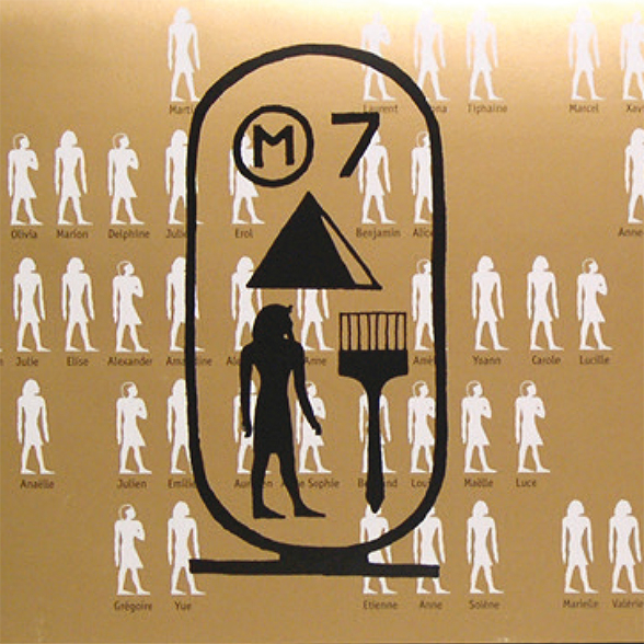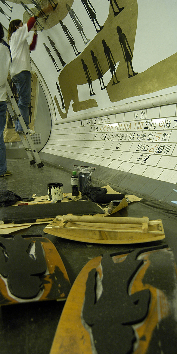 Dans la nuit du 21 au 22 novembre 2004, les noms des 16 pharaons sont révélés. Pour chaque nom, l’un des signes qui le compose a été sélectionné pour être poché à la bombe, en or, de manière volontairement démesurée.
