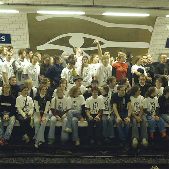 Dans la nuit du 14 au 15 novembre 2004, les premiers éléments de l’opération sont posés : un ensemble de hiéroglyphes, redessinés à la main par les élèves, est apposé au pied des affiches publicitaires.