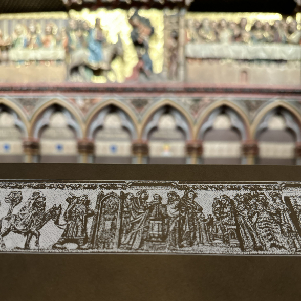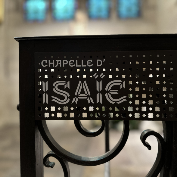 Le système graphique et visuel que nous avons développé permet de répondre aux besoins contemporains du lieu : multilinguisme, présence d’écrans animés, multiplicité et variété des évènements au sein de la cathédrale. Inspirée directement du monument, la signalétique proposée ici a pour objectif de dialoguer de manière harmonieuse avec la cathédrale, en conservant l’exigence d’être visible sans perturber la lecture générale du lieu.