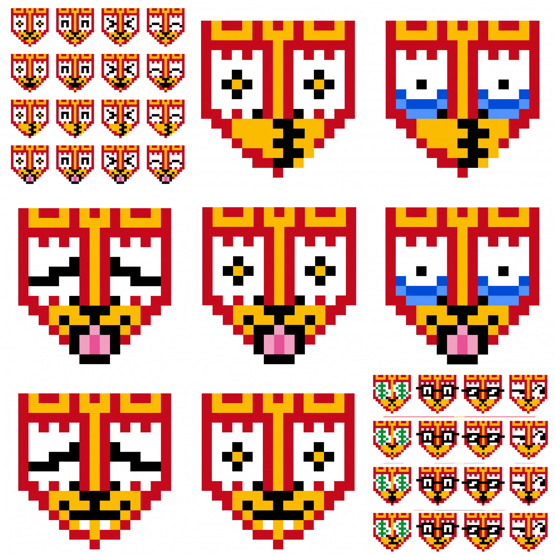 Nous avons décidé de garder l’aspect « pixellisé » de l’ancien logo, mais avons utilisé le blason de la ville de Vire pour créer le nouvel emblème de ce musée municipal. Le blason sous forme de pixels s’apparente à un visage, que nous avons décliné en de nombreux emojis, et bien que le bâtiment fût inscrit aux monuments historiques, nous avons pu installer huit emojis sur la façade du musée, qui symbolisent la réunion des huit communes adjacentes en 2016 pour former Vire-Normandie.
