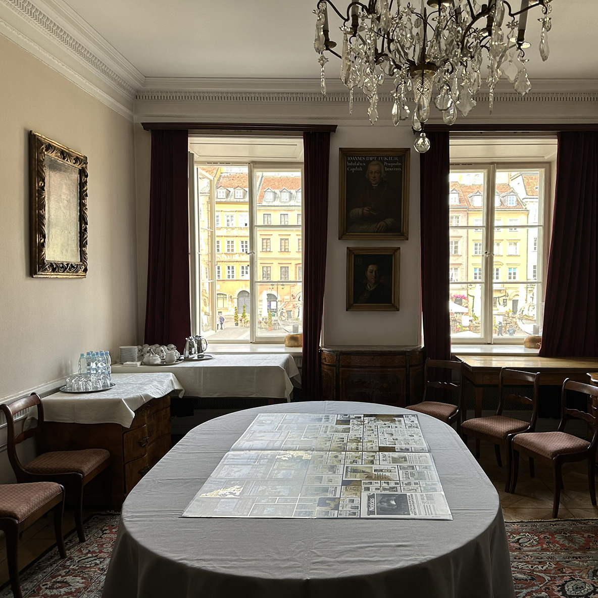 Notre périple s’est poursuivi à Varsovie, dans les locaux même de l’association des historiens d’art polonais, situés au pied de la fameuse place historique Stare Miasto. L’accueil de la tabula dans un des salons de l’association où nous attendait un public très averti a donné une couleur plus intimiste à la performance.